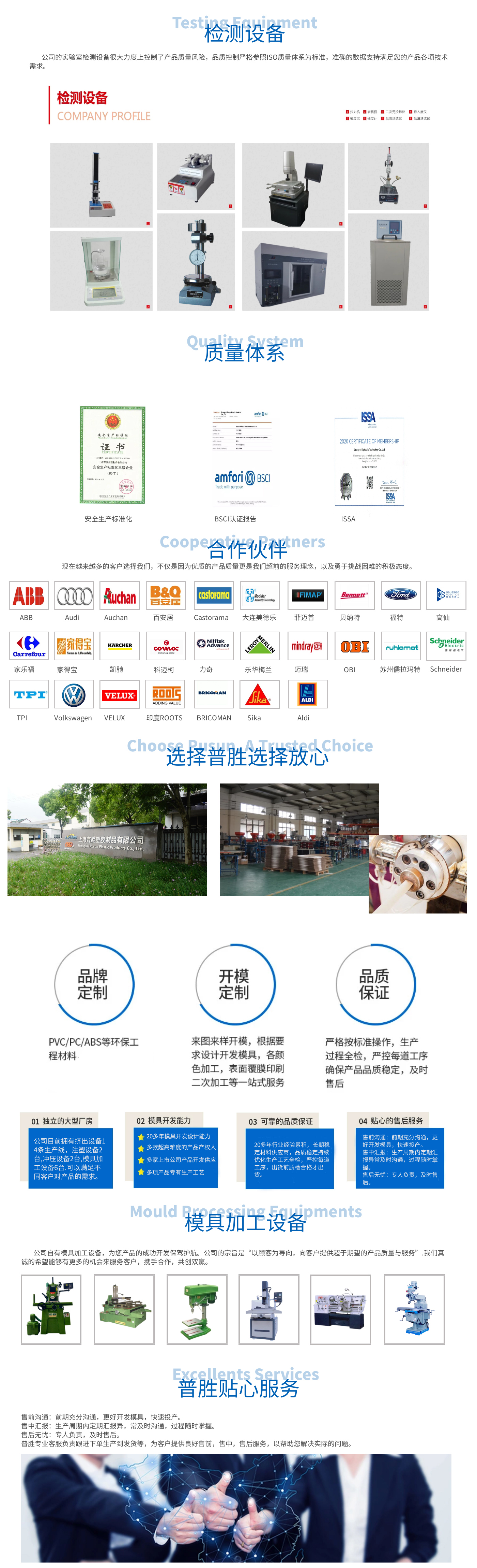 上海普勝塑膠制品有限公司是一家民營企業(yè)。坐落于上海之根松江區(qū)。公司產(chǎn)品遠(yuǎn)銷美國、加拿大、英國、德國、法國、比利時、意大利等多個國家。 20多年的橡塑行業(yè)經(jīng)驗,一直從事橡塑產(chǎn)品的研發(fā)和生產(chǎn)。掌握的工藝:擠塑、注塑、沖壓等橡塑制品工藝。通過資源整合,普勝成為橡塑產(chǎn)品領(lǐng)域的佼佼者。 公司的產(chǎn)品包括防水條、門掃條、密封條、吸水膠條、導(dǎo)電條等橡塑制品。